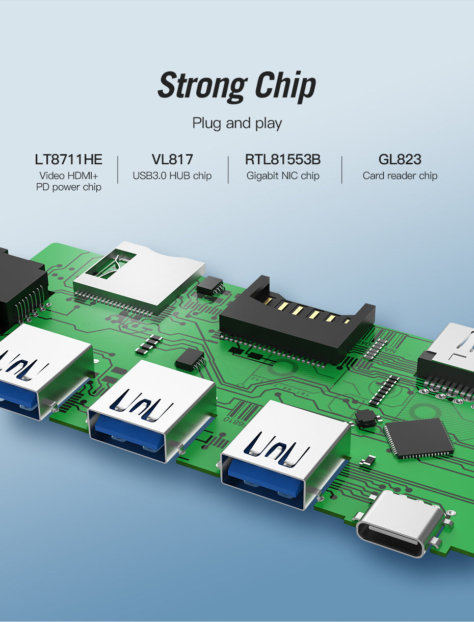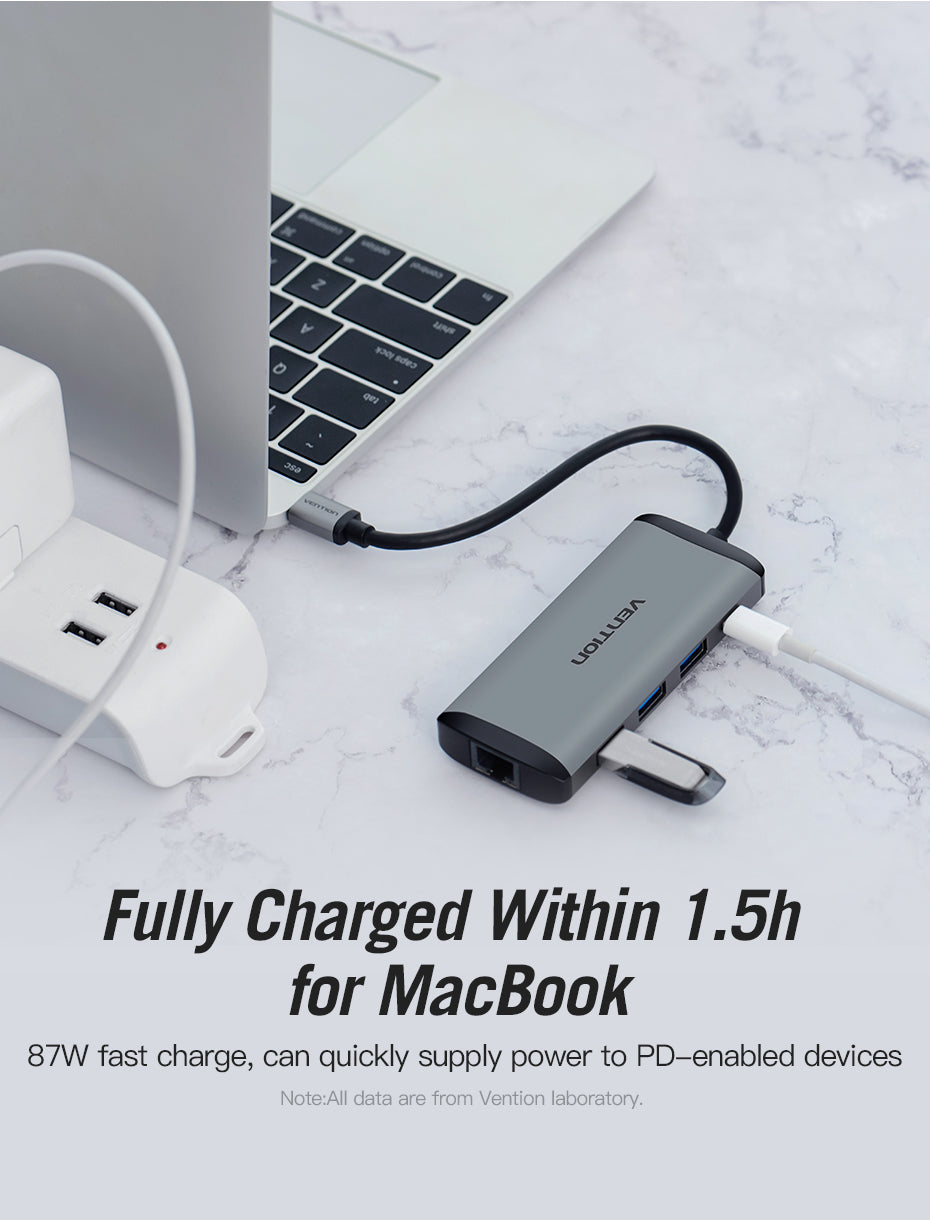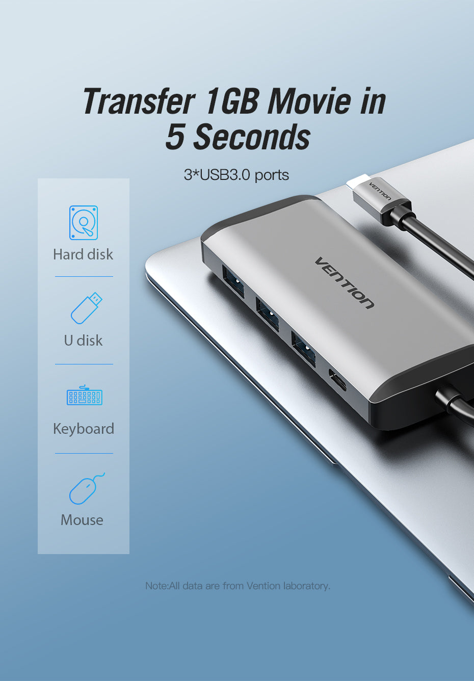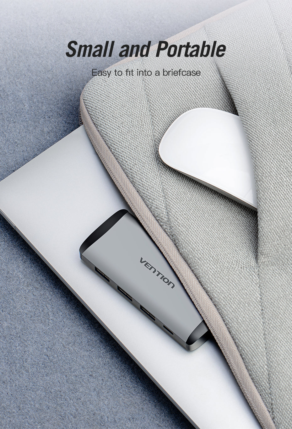 Vention Type-C to HDMI/USB3.0*3/RJ45/TF/SD/PD Converter 0.15M Gray Metal Type