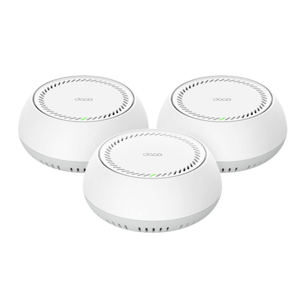 Deco BE65-PoE (3-pack) 3 Deco Deco BE65-PoE units 1 RJ45 Ethernet cable 3 Power adapters 3 Ceiling/Wall Mounting Kits Quick Installation Guide