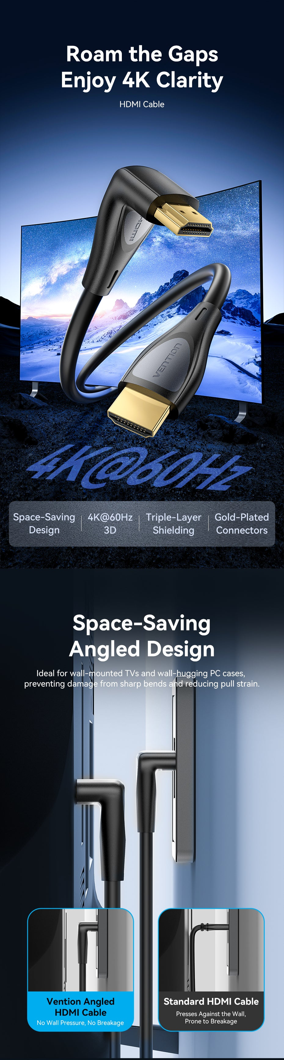 Vention HDMI™-A Male to Male 4K HD Right Angle Cable 90 Degree