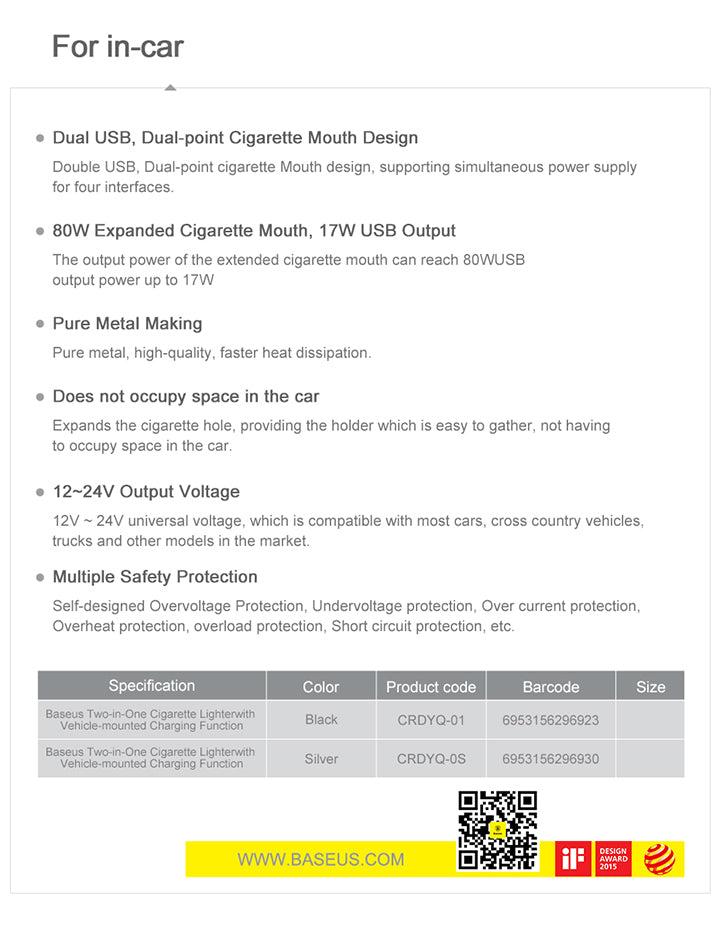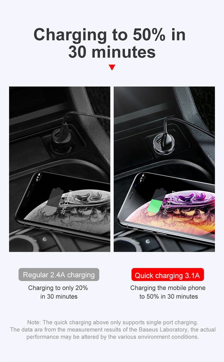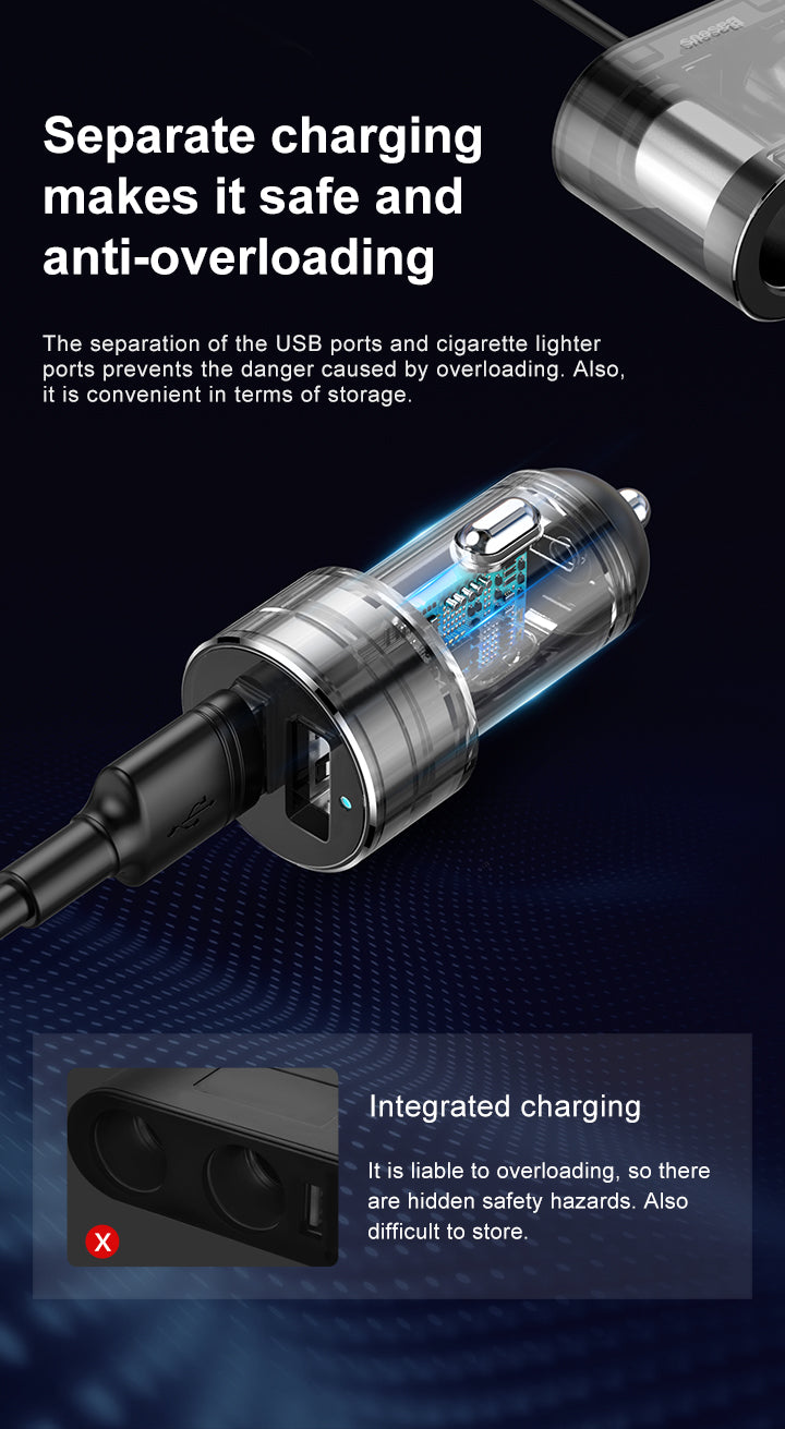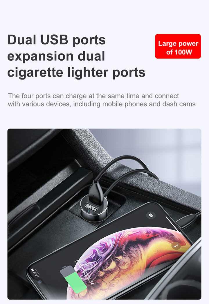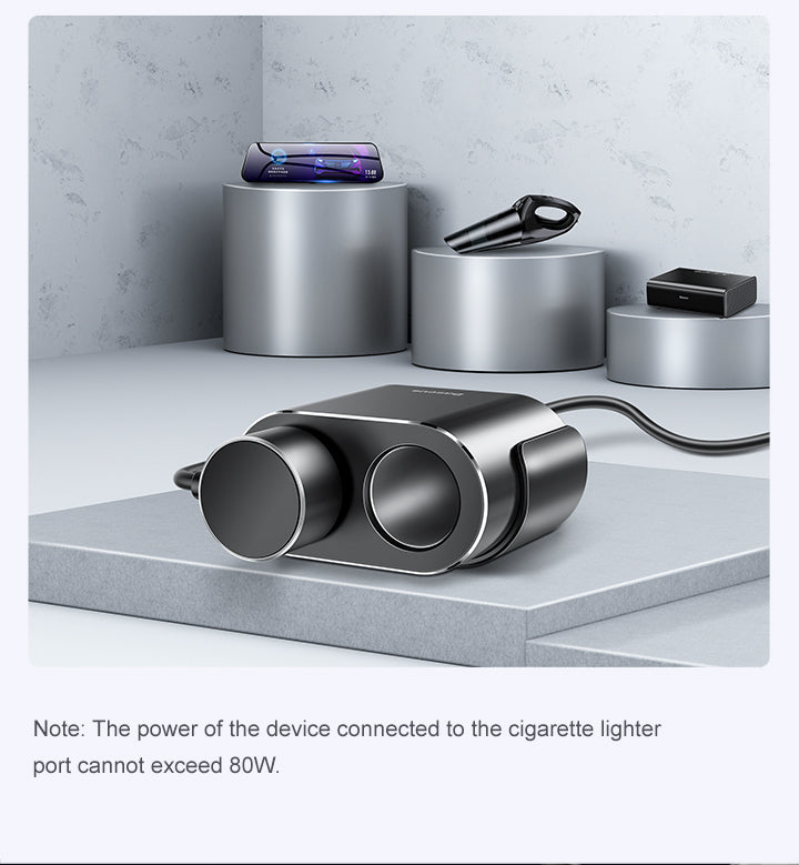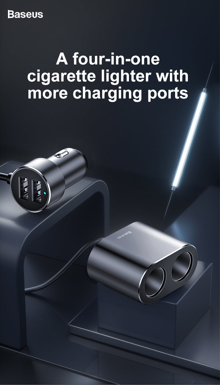 Baseus High Efficiency One to Two Cigarette Lighter(dual-cigarette lighter 80W +dual USB 3.1A)Black
