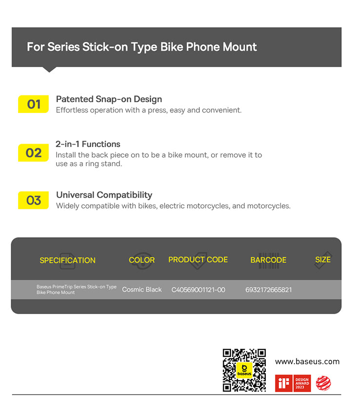 Baseus PrimeTrip Series Stick-on Type Bike Phone Mount Cosmic Black